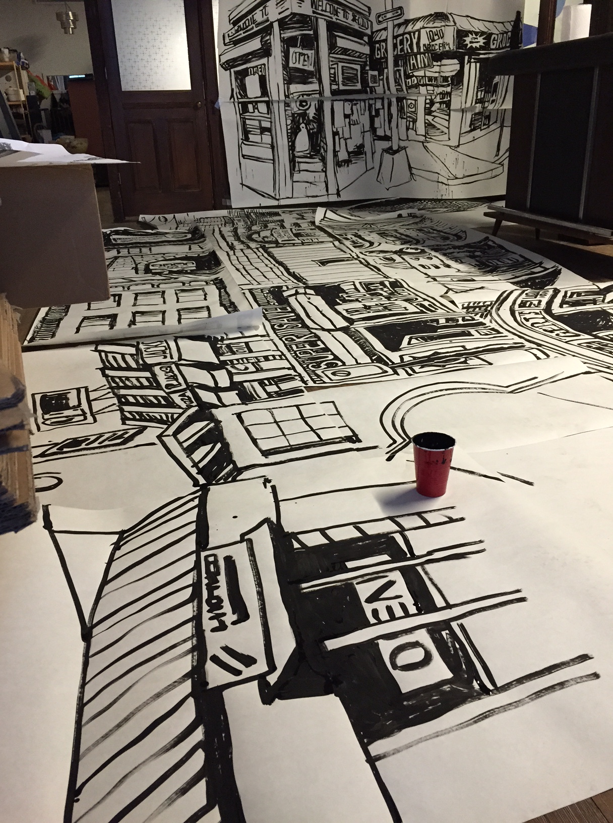 The drawings on the bottom are raw materials for collage that I will continue to amass this month, while also building sculptural components for the installation. Two months of drawing all day, every day at a bigger than life scale – I’m looking forward to this drawing endurance test!