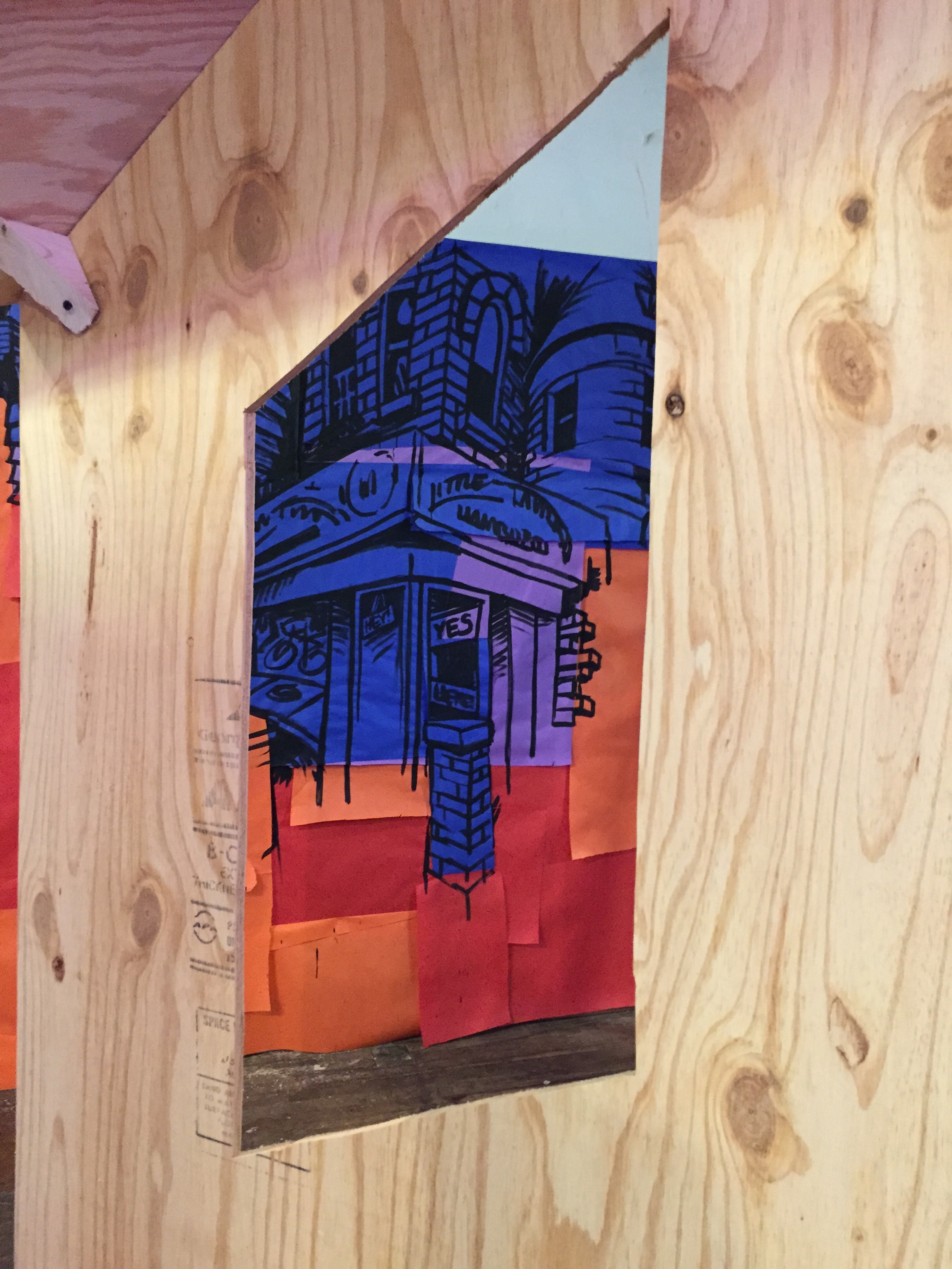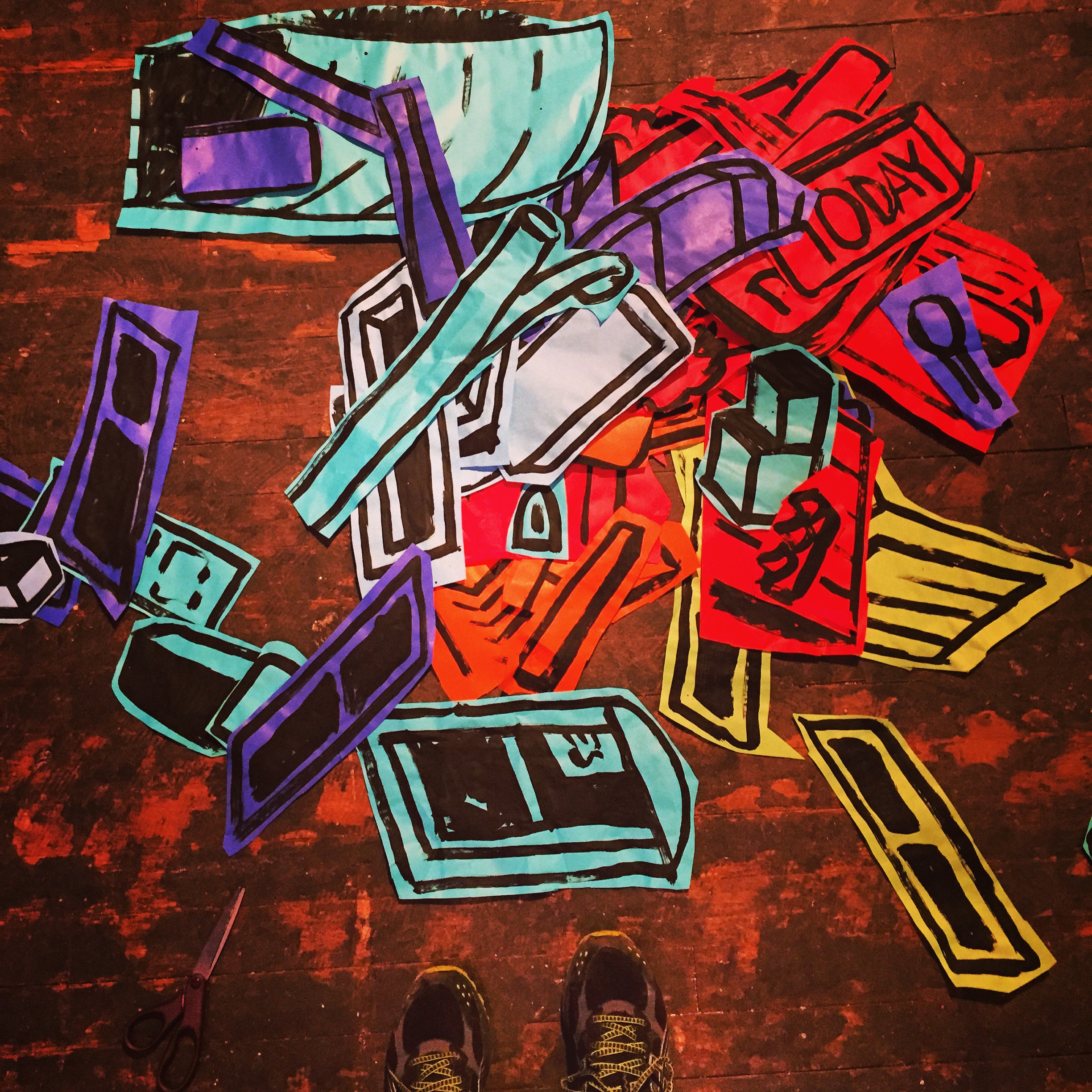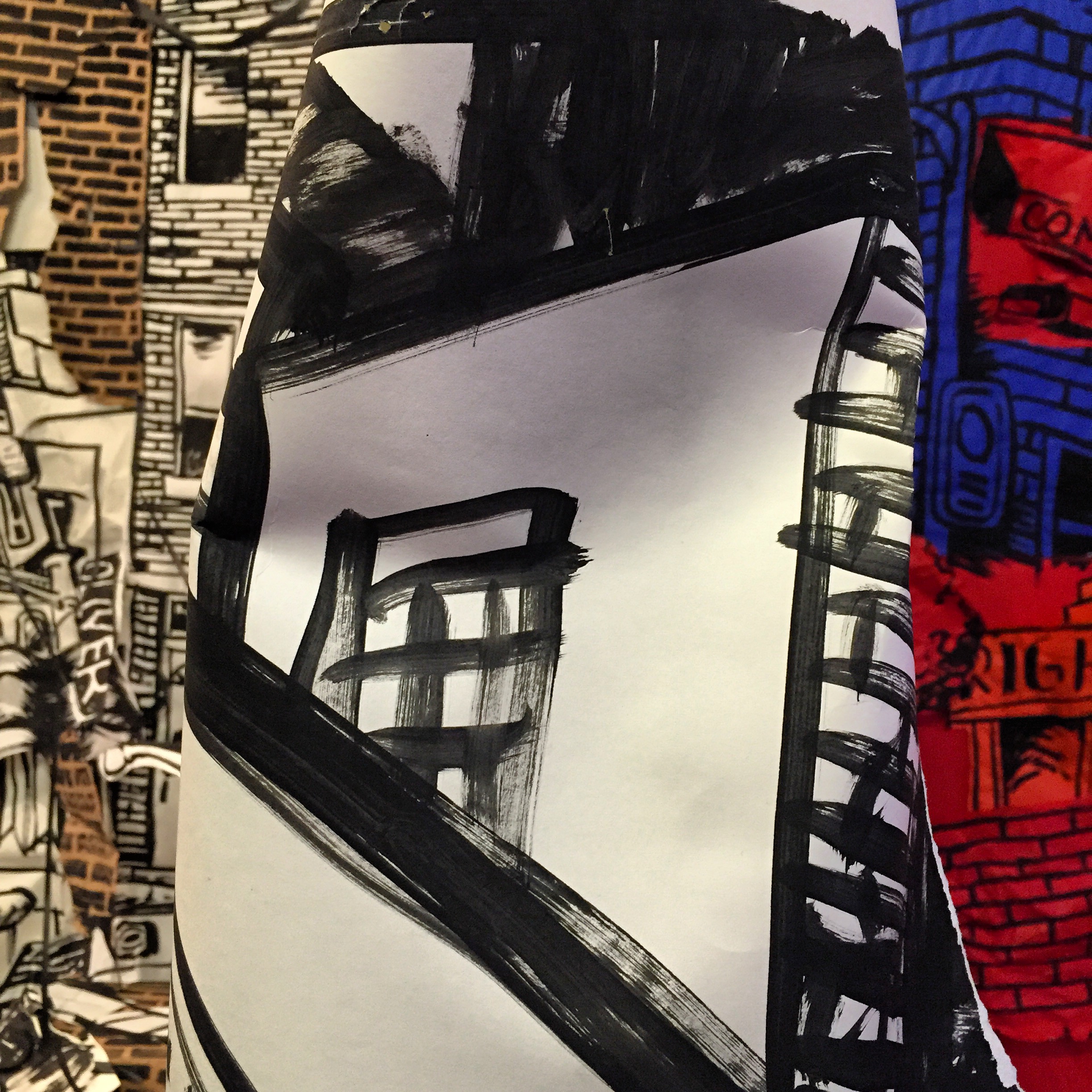 This week has been a beautiful, paper choked whirlwind thus far. Nolan constructed some super cool rolling sculptural armatures, and collaging is happening in force. I’ve got scissor blisters all over my fingers and have already unloaded at least a box and a half of light duty staples (eep – good think deinstall is over a month away!) Passersby are starting to stop and look in with greater frequency as the space starts to fill with color and texture – I’m looking forward to being able to finally throw open the doors!